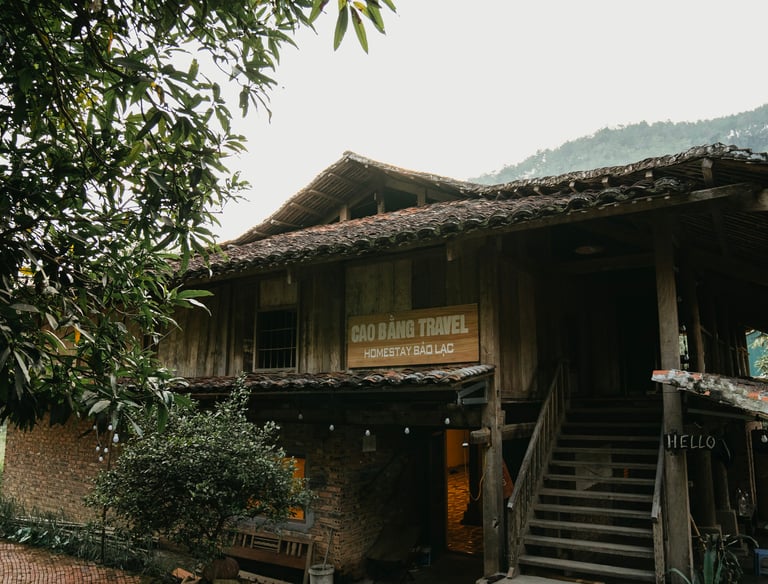 Phong cách nhà sàn truyền thống, ấm cúng và thân thiện. Cùng hòa mình vào không khí sôi động của Chợ Đêm Bảo Lạc. Phòng nghỉ ấm cúng, gần gũi, giúp bạn khám phá nét văn hóa vùng cao độc đáo của người dân tộc Tày nơi đây.
